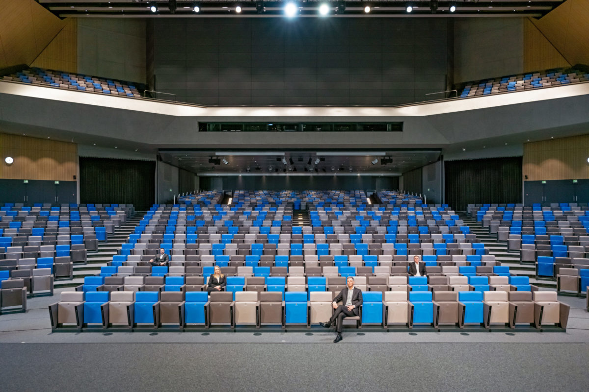 The building’s architecture allows two or three auditoriums to merge into one; the number of seats in each space can also be varied in just a matter of minutes. This modularity is based on two mechanisms: a system of sliding walls, and the Gala Venue technology.