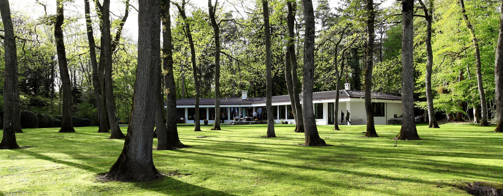 During a visit, one will discover a house, a terrace, and a splendid garden. A lounge, a dining room, a kitchen, and a conference room are all at the clients’ disposal. The conference room is surrounded by trees and its glass walls give the sensation of being one with nature. Additionally, beautiful gardens can be spotted from the terrace, the dining room, and the living room.