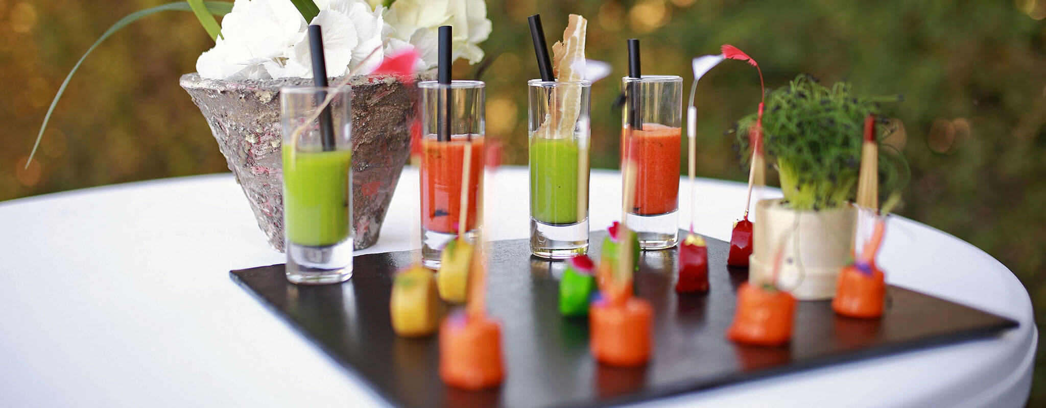Pour le reste, laissez-vous porter par notre traiteur partenaire qui, en professionnel averti, s’occupera de vous chouchouter en matière de service et de présence… Car si la nourriture se doit d’être à la hauteur de votre événement, quand elle est servie avec élégance et surtout avec le sourire, elle n’en est que meilleure !