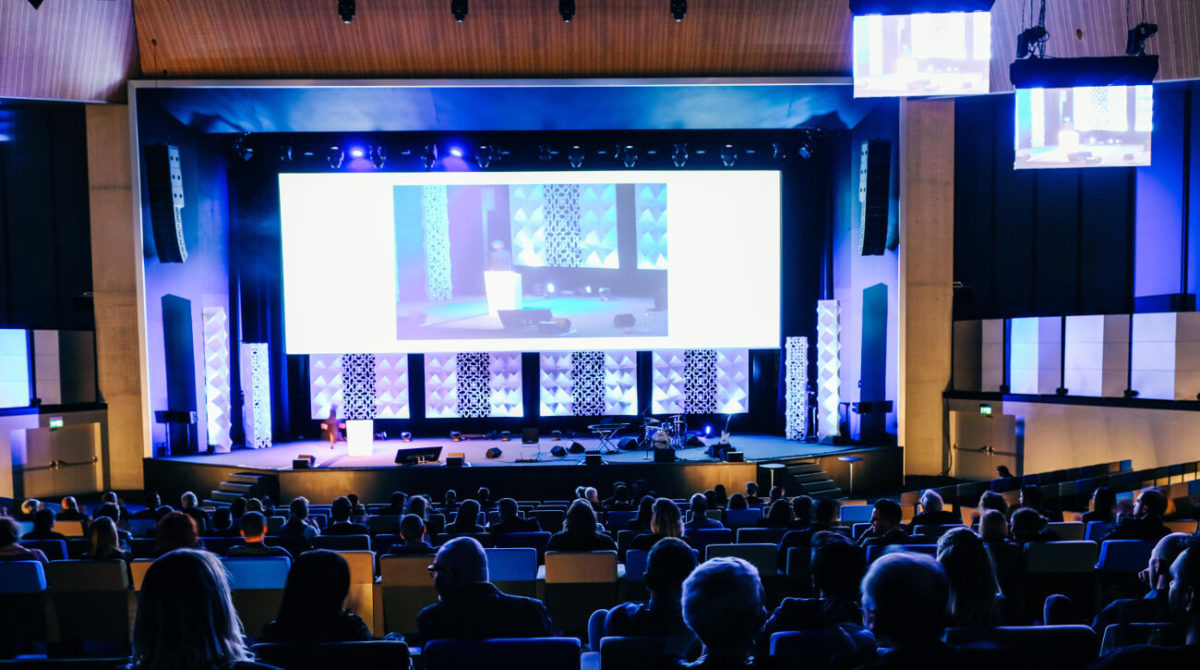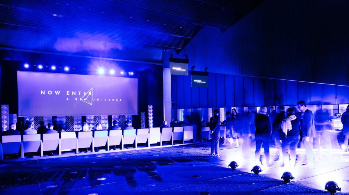 La soirée a débuté à 19h00 par un apéritif, accompagné par un trio de musiciennes classiques qui a surpris les invités avec ses reprises de standards pop et rock dans le foyer campus. 45 minutes plus tard, l’attention des invités fut captée par un décompte de plus en plus intense projeté contre un mur. 5, 4, 3, 2, 1… Entrez ! Grâce à la modularité du bâtiment, les espaces peuvent fusionner, c’est ainsi qu’un mur s’abaissa permettant aux invités de découvrir l’univers unique de l’Auditorium A totalement réaménagé pour l’occasion.