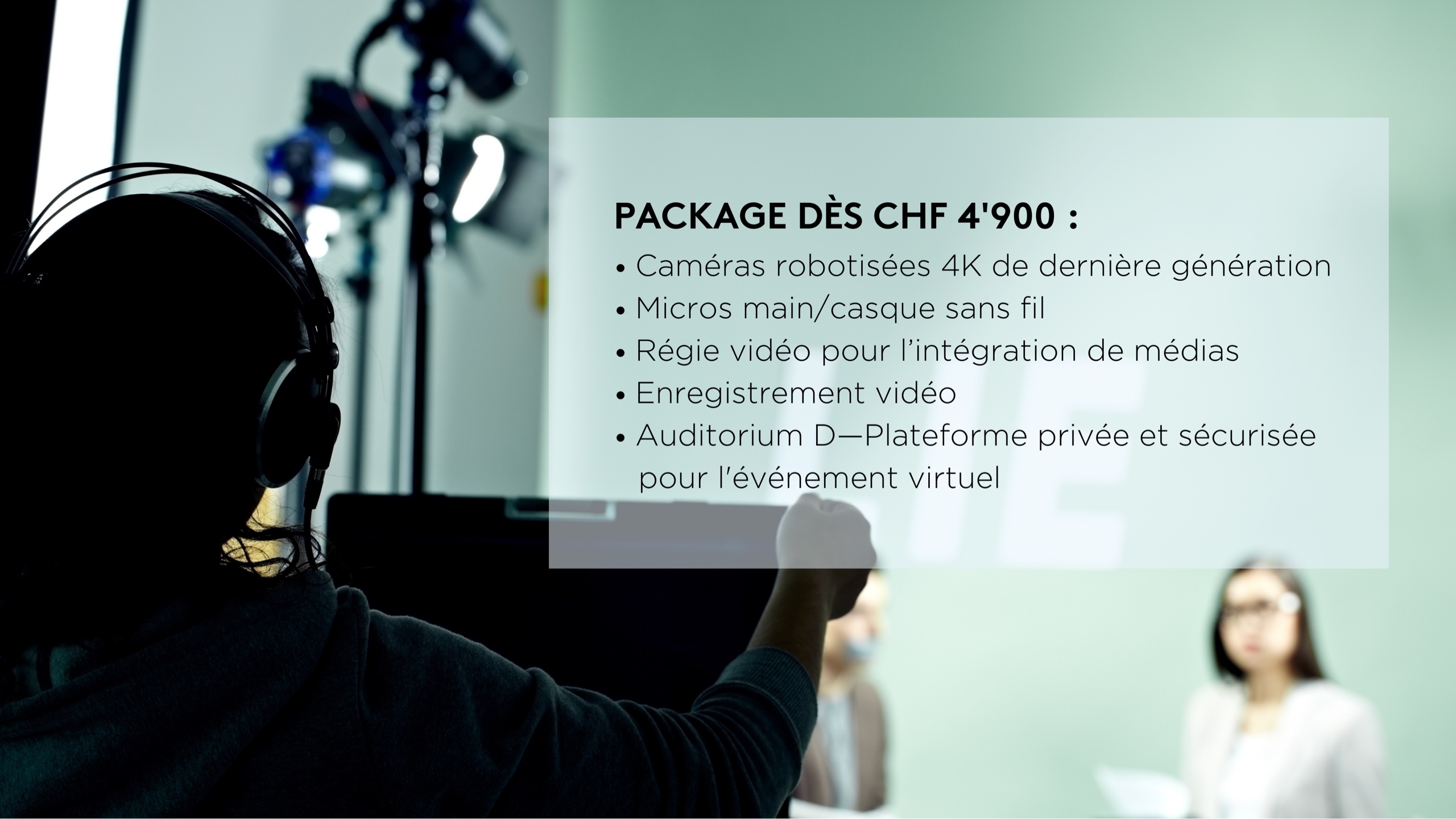 Optez pour le confort du SwissTech Convention Center, ainsi vous avez le choix entre divers espaces et scènes. En 2020, des caméras de dernière génération et un nouveau réseau ultra-rapide en fibre optique ont été installés dans l’entier du bâtiment, ainsi la qualité et la stabilité de votre vidéo streaming est assurée. La qualité du matériel audio visuel digne d’un studio TV est un atout indéniable. Sans oublier que l’encadrement de votre événement par nos Events Managers expérimentés vous permettra de garantir le succès de votre projet.
